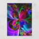 Cartão Postal Padrão Azul Vermelho Abstrato Floral Moderno #12