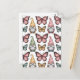 Um padrão contínuo encantador e colorido com uma disposição repetida de gnomos de jardim desenhados à mão e borboletas estilo monarca. Os gnomos são retratados em vários tons pastéis suaves - incluindo verde sálvia, rosa empoeirado, amarelo mostarda e azul ardósia - com chapéus altos e deformados e barbas brancas fartas. Entre eles estão borboletas vibrantes em tons de rosa, laranja e azul turquesa com padrões detalhados de asas pretas.