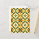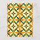 Design de padrão contínuo retrô com formas decorativas laranja e verde.