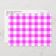 Cartão Postal Padrão de Gingham Cor-de-Rosa e Branco
