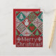 Cartão de Natal Merry, incomum original. Espetáculos de natal vermelhos, verdes, brancos e teais com árvores de Natal, flocos de neve, corações, bonecos de neve e ornamento de fevron zigzag.