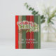 Um cartão de cartões de natal de Natal bonito, único, clássico, moderno, bonito e decorativo, com um clássico vermelho-escuro Holiday, verde-florestal e um texto de "Feliz Natal" de cor branca, num contexto de planícies com estilo caseiro de madeira rusticada, de madeira casada e casada. Com espaço para personalizar ou personalizar facilmente com o nome da sua empresa ou família, e espaço no fundo para escrever ou impressão o seu próprio desejo de Feriado.