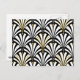 Reprodução digital de um wallpaper clássico, Art Deco, cartão postal de padrão de ventilador - branco a preto, embelezado com ouro