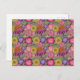 Cartão Postal Padrão Floral Verde de Flor Selvagem