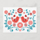 Cartão Postal padrão foliar vermelho e azul Escandinavo