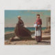 Cartão postal de arte fino com a pintura - Pai Coming (1873) - do artista americano Winslow Homer (1836-1910). Uma paisagem representando um retrato de um jovem sentado em um barco a remos na praia com sua mãe, enquanto aguardam o retorno do seu pai do mar.