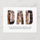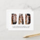 Celebre o Papai com um presente único - este cartão postal branco que apresenta "Papai" escrito em letras garrafais que duplamente servem como molduras de fotos personalizáveis. Perfeito para o Dia dos Pais, aniversários ou apenas para mostrar apreço, este cartão postal permite que você exiba suas fotos favoritas de crianças, netos, animais de estimação ou memórias especiais dentro de cada letra. Crie um presente sincero e personalizado que o Papai irá valorizar todos os dias com este cartão postal personalizável com moldura de fotos "Papai". Envie uma mensagem sincera com este cartão postal lindamente projetado que também apresenta a citação tocante, "Para o mundo você é um pai, mas para sua família você é o mundo." Perfeito para o Dia dos Pais, aniversários ou apenas para mostrar apreço, este cartão postal combina palavras significativas com um layout elegante que é ideal para enviar pelo correio ou presentear. Impresso em papel cartão de alta qualidade, é uma maneira simples, porém poderosa, de expressar gratidão, amor e admiração pelos pais que significam tanto. Faça de qualquer