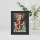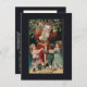 Jolly Red-robed Vintage Papais noeis segurando seu saco de presentes e Holly com três crianças felizes dançando ao seu redor com sombras e realces de ouro. A cor de fundo é personalizável. A parte traseira apresenta gráficos complementares personalizados exclusivos com campos de texto editáveis.