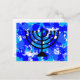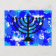 Cartão Postal Paint Splatter Blue Menorah