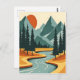 Cartão Postal Paisagem da Montanha Retroativa Ilustração Azul Ve