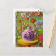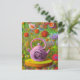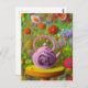 Um cartão postal branco com IA gerou trabalho de arte de um bule de chá colorido em uma paisagem floral brilhante.