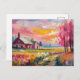 Uma vibrante e moderna pintura de uma fazenda no outono, com tons quentes de laranja, rosa e ouro com pinceladas de abstrato expressivas. A composição dinâmica captura a beleza do outono, evocando a serenidade de uma paisagem rural. As cores ousadas e a escova fluida criam um sentido de movimento e energia, dando a esta peça uma reviravolta contemporânea sobre uma paisagem rural clássica.