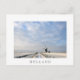 Cartaz fotográfico de uma visão minimalista sobre uma paisagem de inverno na Holanda com um percurso e um canal em direção a um moinho de vento sob uma camada de neve com nuvens agradáveis ao nascer do sol no campo holandês com uma fronteira branca e o texto "Holanda".
