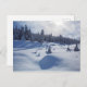 Esta foto apresenta uma paisagem simples com profundas derivas de neve, sombras profundas e árvores carregadas de neve.