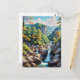 Esta imagem impressionante captura uma paisagem serena de montanha apresentando uma cascata cascata que flui através de um terreno rochoso. A exuberante floresta verde, pontilhada com árvores mostrando tons de outono, cria um contraste vibrante contra o céu azul claro. A cena é enquadrada por montanhas majestosas no fundo, adicionando profundidade e grandeza à composição. Este cenário pitoresco é perfeito para os entusiastas da natureza e para aqueles que buscam tranquilidade e inspiração do excelente ao ar livre.