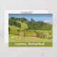 Paisagem de Verão na Suiça Cartão postal Uma paisagem de Verão idílica de vacas a pastar numa pastagem verde em Suiça. Caixa de texto verde para personalizar facilmente a imagem por celeste@khoncepts.com