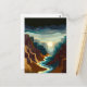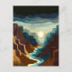 Uma bela paisagem de um canyon com um rio em tons negros de marrom, bronzeado, azul, ciano, ouro e bege.