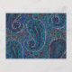 Cartão Postal Paisley Blue Indian Boho Art Pattern