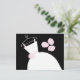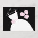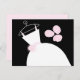 Cartão de posto temático de noiva com um design bonito em tons de rosa, preto e branco com um vestido estilizado de noiva acompanhado por um buquê na frente e rosa pálido para trás. Um design personalizável para você personalizar com seu próprio texto, imagens e ideias.