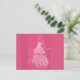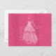 Um esboço de uma mulher com um lindo vestido de branco contra um fundo rosa escovado.