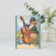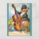 Cartaz de páscoa vintage encantador com um violoncelo tocando coelho e seu amiguinho, pintado pela ilustradora americana Ellen Hattie Clapsaddle.