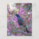 Um belo grilo azul e preto empoleirado em um galho em meio a lindas flores de maçã cor-de-rosa na flor do cheio. Um presente adorável para você ou alguém especial!
