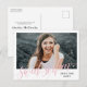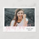 Doce 16 salve o cartão-postal com Sweet Six escrito em um roteiro de caligrafia rosa brilhante sobre uma foto da aniversariante. Adicione suas informações na parte traseira do cartão-postal em preto-e-rosa.