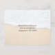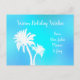 Cartão de desejos de Natal para personalizar com saudação e assinatura na frente. Design gráfico azul aqua brilhante com imagem de palmeiras. Use para enviar saudações de um local tropical e clima quente. Este cartão também funciona como um cartão de Natal corporativo. No verso, um modelo de endereço é fornecido sobre uma imagem de areia de praia, ou exclua o texto de exemplo para encomendar em branco.