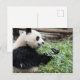 Cartão postal do Panda desfrutando folhas de bambu em um zoológico na China.