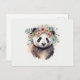 Cartão Postal Panda Flowers Watercolor