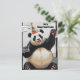 Cartão Postal Panda gigante sentado vestindo chapéu de aniversár