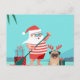 Cartão Postal Papai Noel e o Pug dele no surfboard