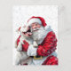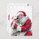 "A magia de Natal é a cauda do cão que abana e a risada do coração dos Papais noeis" e uma ilustração feliz do Pai Natal a abraçar o seu feliz cão branco-pitbull.