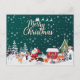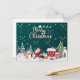 Papai Noel, Cartaz de Natal Feliz Celebra a temporada com este cartão-postal divertido com Papai Noel, Snowman, renas, flocos de neve de natal alegres com um fundo verde, adicione sua mensagem e adicione seu endereço de retorno para uma mensagem fácil. Simples e divertido, mas moderno e festivo, um postal perfeito para enviar desejos de férias.