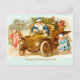 Cartão Postal Papais noeis no carro com anjos tocando. Natal