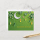 Cartão Postal Papel cortado Lanternas Ramadãs, Lua, Flores, Verd