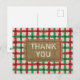 Cartão Postal Papel Kraft Rústico Xadrez Vermelho e Verde Natal