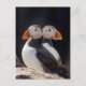 Par de papagaios-do-mar olhando em direções opostas em rochas nas ilhas Farne, Northumberland. Ótima fotografia para uma legenda.