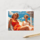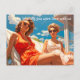A pintura a óleo de duas belas moças em vestidos solares relaxando em um pavimento sol durante as férias de primavera em Miami em um resort sob um céu azul. Feito com algoritmos generativos e Photoshop.