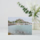 Uma bela vista do Castelo de Mont Orgueil na ilha de Jersey, nas Ilhas do Canal, impressa num cartão postal.