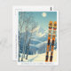 Bonjour das montanhas nevadas de Tignes, França, na Europa! Esperamos que esteja tendo umas ótimas férias de esqui. Este cartão-postal apresenta uma linda paisagem de montanha de cinzas azuis com conselhos de esqui retrorados em um padrão tribal laranja. Todas as frases de texto podem ser personalizadas para você!