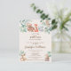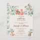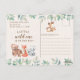 Tema da floresta gira em água, animais florestais com padrão de madeira bebê chá convite postal. Raposa, urso, dono, ouriço, guaxinim e veado com folhas e mensagem: um pouco selvagem está a caminho.