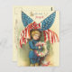 Imagem de Feriado Vintage com um menino segurando coroa floreada com bandeiras americanas. Lê "Esqueçamos" a comemoração do Dia Memorial.