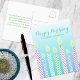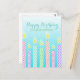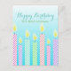 Celebre o dia especial do seu funcionário com nosso design personalizado de cartão-postal de aniversário. O cartão-postal apresenta velas listradas ilustradas encantadoras contra um fundo azul gradiente, e o texto "Feliz Aniversário a um grande funcionário!" escrito em duas fontes modernas e elegantes. Com a mensagem no verso do cartão-postal totalmente personalizável, você pode tornar esse cartão-postal tão único e pessoal quanto o seu funcionário. Envie seus melhores votos de aniversário e deixe-os saber o quanto você valoriza o seu trabalho árduo e dedicação.