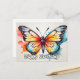 Este cartão de parabéns exclusivo apresenta uma ilustração de uma borboleta flutuante. Por favor, sinta-se à vontade para ajustar o texto no verso deste cartão.