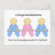 Dois bebês de desenho animado, dois rapazes e uma rapariga, colocados contra um fundo branco. As palavras "Parabéns, você é avô para triplicar!" acompanham a imagem.