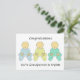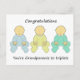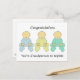 Três bebês de desenho animado sentados vestindo ternos de cor pastel e as palavras 'Parabéns que você é Avós para Triplets'.