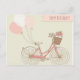 Uma bicicleta rosa vintage desejando um feliz aniversário - excelente se sua filha, esposa, namorada ou quem tiver uma bicicleta nova para o seu aniversário! Este design apresenta uma bicicleta de safra rosa com uma cesta de tecido marrom e balões rosa e brancos.
