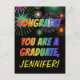 Este emocionante design de cartão postal de congratulações de formatura apresenta a mensagem "PARABÉNS! VOCÊ É UM FORMADO", com as letras tendo um padrão de gradiente inspirado no espectro do arco-íris, juntamente com um nome personalizado, e um padrão colorido inspirado no de fogos de artifício explodindo. O verso apresenta uma mensagem que pode ser editada. Um cartão postal como este pode ser uma maneira divertida de reconhecer um estudante que se formou recentemente no ensino médio, faculdade, universidade ou algum outro programa.