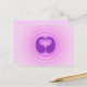 Este design apresenta uma obra de arte em forma de coração rosa e roxo sobre um fundo espiral na frente e cor correspondente complementar no verso. O verso em branco está pronto para o seu bilhete manuscrito.